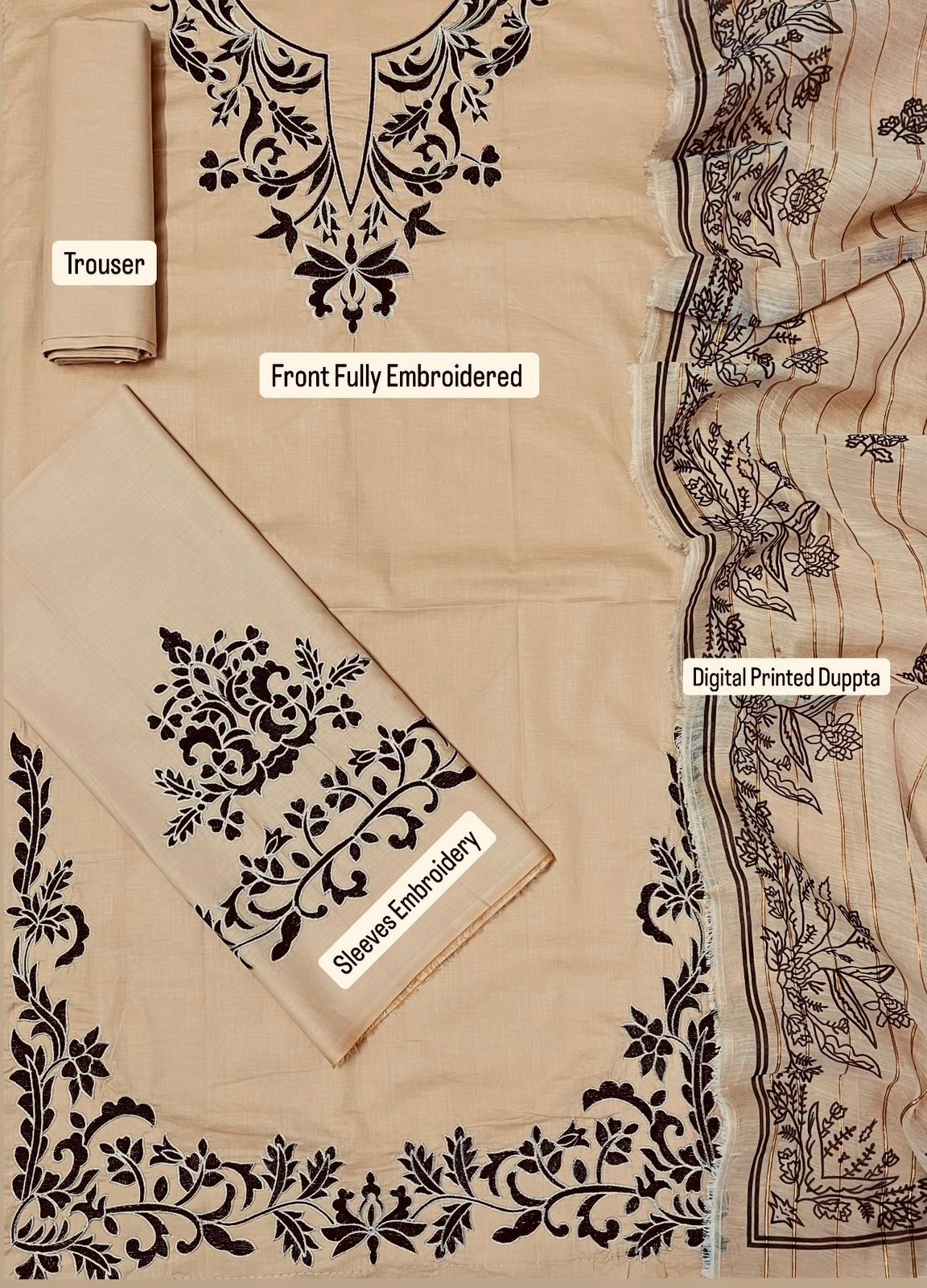 •Embroidered lawn sleeves
